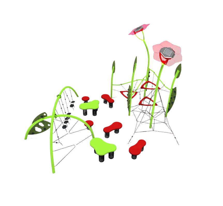 « Le Jardin » est fabriqué avec des matériaux de haute qualité pour garantir une durabilité maximale et une sécurité optimale. L’acier galvanisé constitue la structure de base, offrant une résistance et une stabilité exceptionnelles. Les éléments en HDPE et HPL, deux matériaux reconnus pour leur résilience et leur résistance aux intempéries, ajoutent une touche de couleur et de fun à l’ensemble.