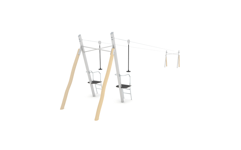 La double tyrolienne en bois de robinier offre aux enfants une expérience ludique et amusante, encourageant la socialisation et le développement de compétences physiques telles que l’équilibre et la coordination.