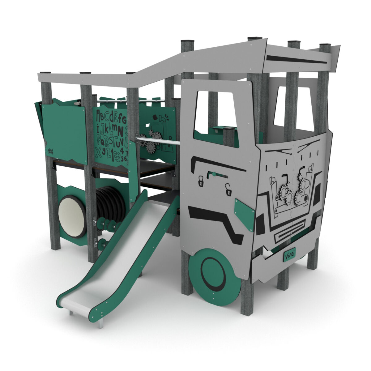 Le Camion de la gamme recyclée est une structure de jeu durable conçue pour offrir aux enfants une expérience amusante et éducative. Voici ses caractéristiques principales :