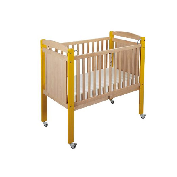 Lit en hêtre massif à barreaux, ouverture de la barrière d’une main, verrouillage de sécurité
